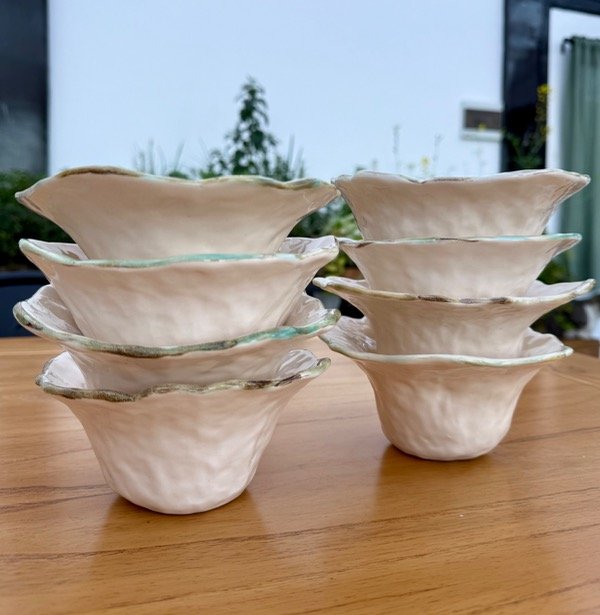 Pequeño cuenco de formas orgánicas y borde ondulado, esmaltado en cristal con detalles únicos en cada pieza.